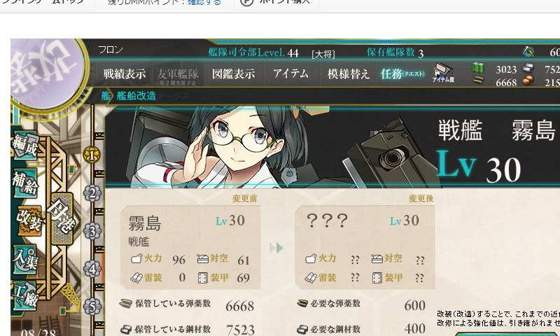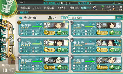 ルートがそれたり、誰か大破したりでボスにすらたどり着いてません(´・ω・`)