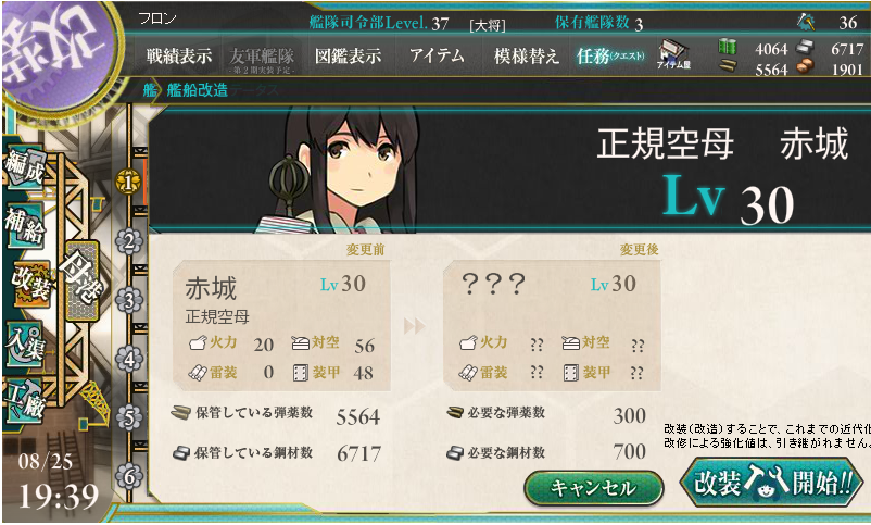 今日はようやく赤城さんを改にすることができたので、満足です。